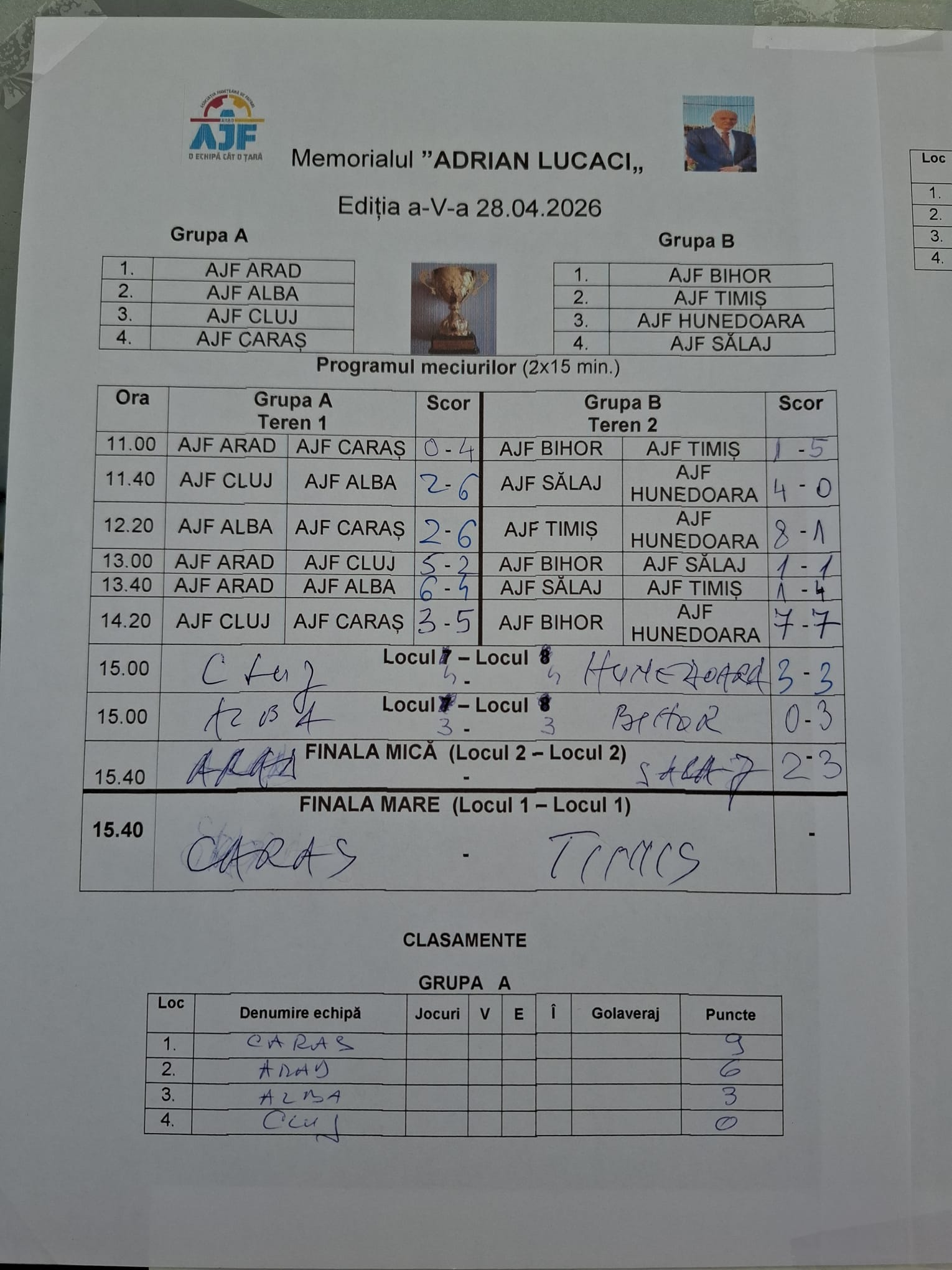 Trofeul „Adi Lucaci” a fost câștigat de echipa AJF Timis, căreia îi adresăm felicitările noastre!